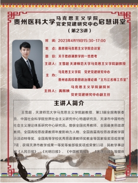 为深入学习贯彻习近平总书记关于思政课建设的重要论述,不断提升思政课教学质量,4月19日,学院邀请天津师范大学马克思主义学院副教授王雪超作题为《关于思政课教学的一些思考》的专题讲座。讲座由学院副院长禹辉映主持,教职工第一支部全体党员参加。