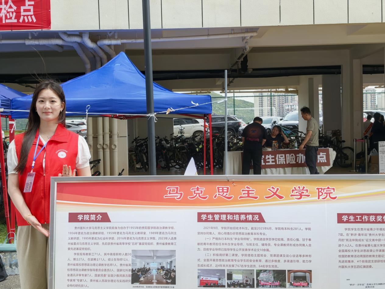 在学院党委副书记兼纪委书记王万江、分团委副书记兼辅导员马景瑶、班主任刘雪冬等老师的带领协调下,党员志愿者与学院学生会成员密切配合,高效有序地推进各项迎新任务。学校一号门、二号门和四号门均设有志愿者引导点,为新生提供路线指引和报到协助;A7宿舍楼下设置的学院报到点,集中办理入学手续,确保流程顺畅。此外,学院还派出班主任杨璨玉、陈娅娅带领学生志愿者,前往贵阳客车东站(龙洞堡)开展校外迎新接站工作,实现从车站到校园的“一站式”暖心服务。