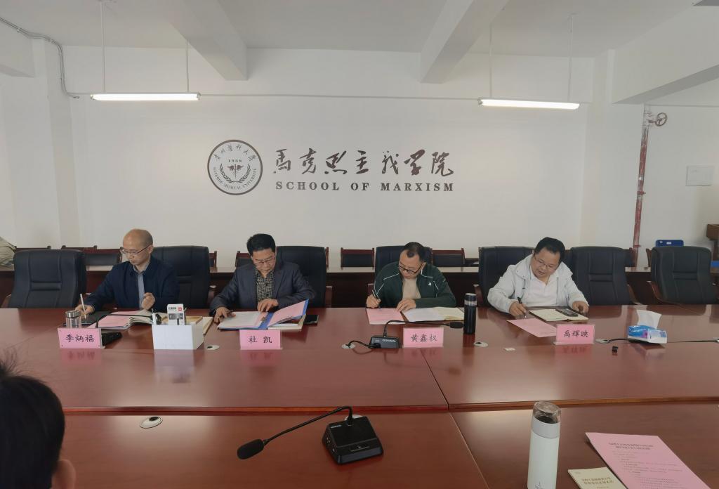 4月16日,马克思主义学院在云漫湖校区善思楼会议室召开党委理论学习中心组会议。学院党委书记杜凯主持,学院院长黄鑫权、正处级组织员李炳福、副院长禹辉映出席,各科(室)负责人列席。