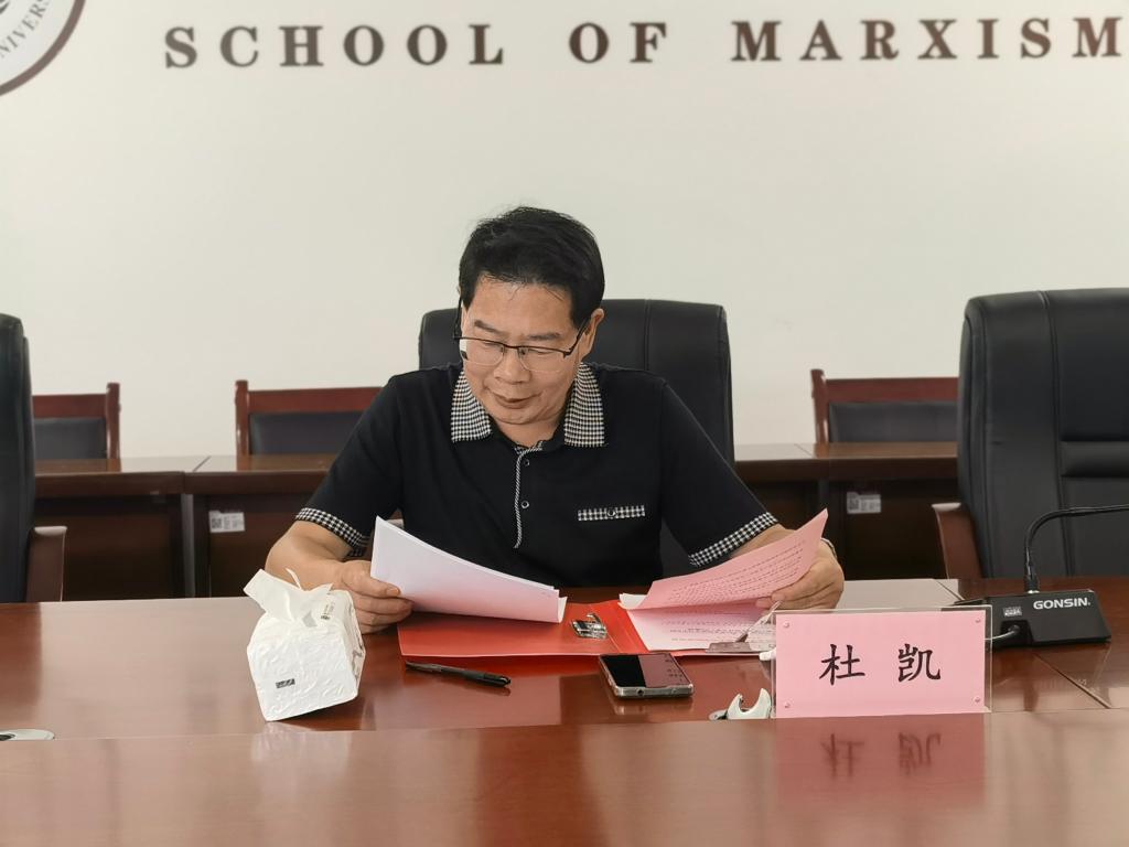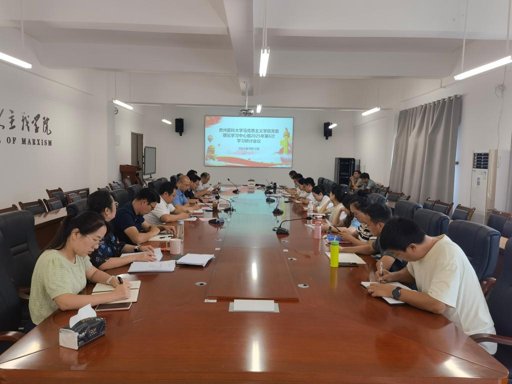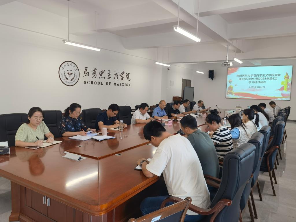 9月12日,马克思主义学院党委理论学习中心组开展了2025年第6次学习研讨会,学院党委班子成员、各教研(科)室负责人参会,会议由学院党委书记杜凯主持。