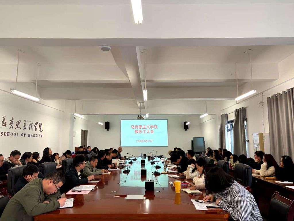为总结过往工作、部署新学期重点任务,进一步统一思想、凝聚合力,推动学院实现高质量发展,3月13日,马克思主义学院召开2026年新学期全体教职工会议。学院全体领导班子成员出席该会议,全体教职工参会。