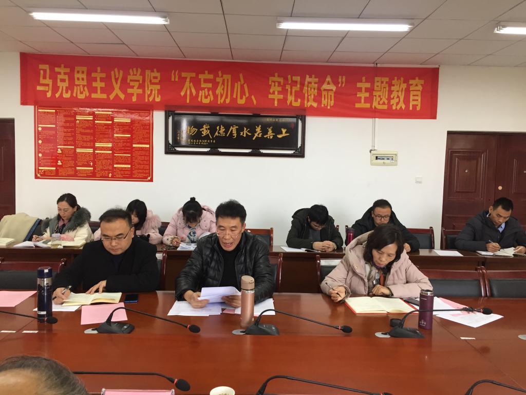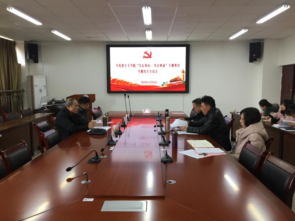 12月6日,马克思主义学院召开“不忘初心、牢记使命”主题教育专题民主生活会。学校主题教育第四督导组组长陈康、组员李前到会指导,会议由学院党委书记韩贞习主持,党委领导班子全体成员出席,科级干部代表及教师代表参加。