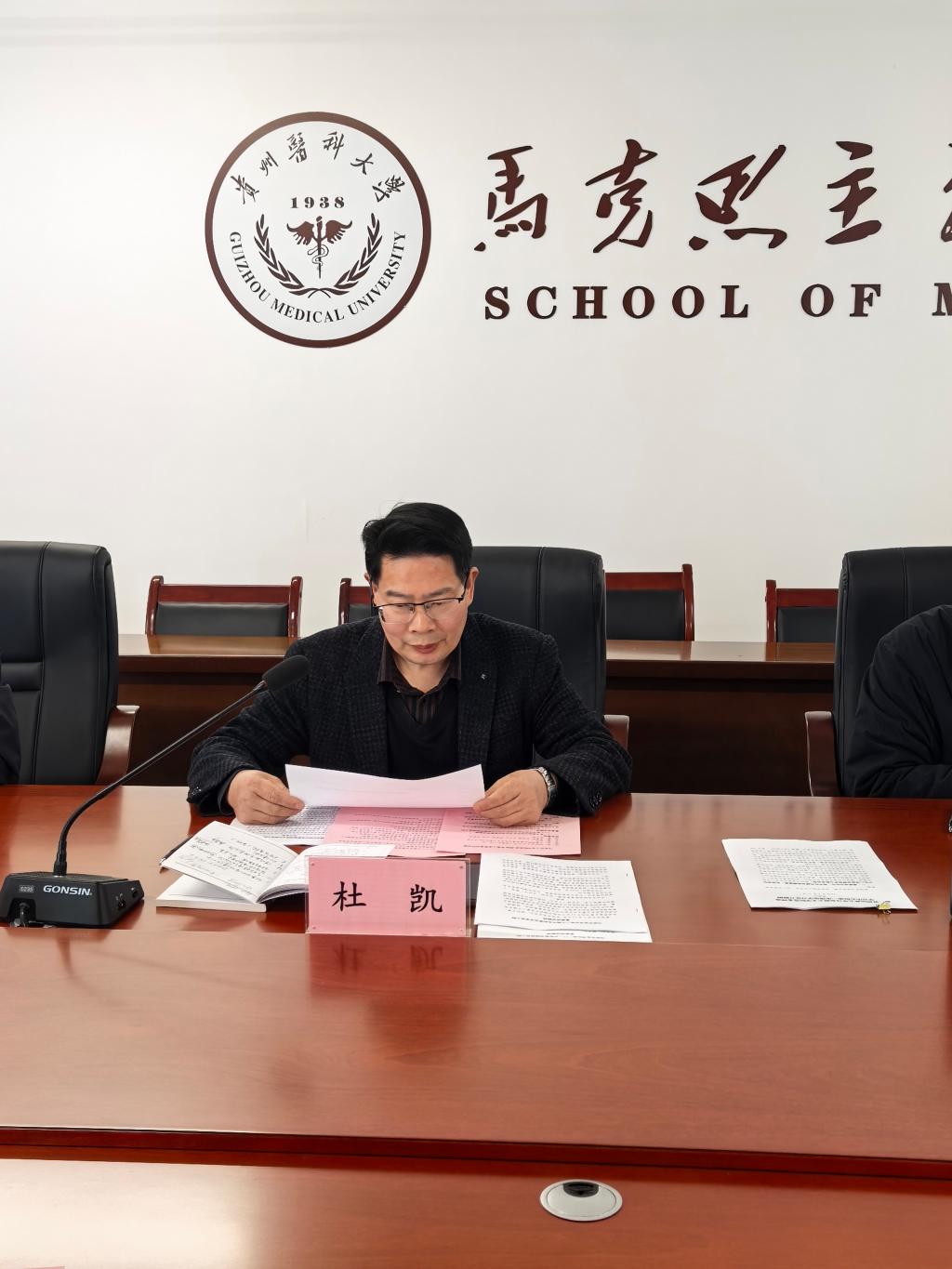 会上,杜凯同志领学习近平总书记在中央政治局民主生活会上的重要讲话精神及《中国共产党章程》第六章党的干部,黄鑫权同志领学2026年全国教育工作会议精神及《习近平谈治国理政》(第五卷)之十八“坚持和加强党中央集中统一领导,把党的自我革命进行到底”,李炳福同志领学中共贵州省委十三届八次全会精神,王万江同志领学全国宣传部长会议精神,禹辉映同志领学习近平总书记关于安全生产重要论述,冯斌同志领学习近平总书记对深入贯彻中央八项规定精神学习教育的重要指示精神及剖析学习了《贵州省纪委监委对贵州医科大学原党委书记、贵州省天然产物研究中心原党委书记(兼)何志旭严重违纪违法的典型案例》,凌富亚同志领学《习近平关于全面从严治党论述摘编》之三“把党的政治建设摆在首位,坚定做到‘两个维护’”。
